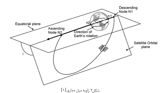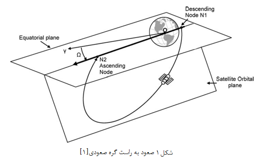 زمین با خط گره ها از گره صعودی به گره نزولی در جهت مدار ماهواره می باشد را